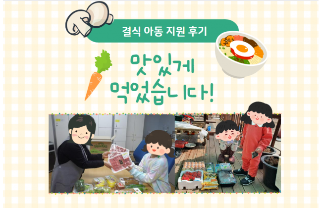 든든한 식사를 위한 영양비 지원결식 위기에 놓인 저소득 가정 아이들이 영양가 있는 식사를 통해